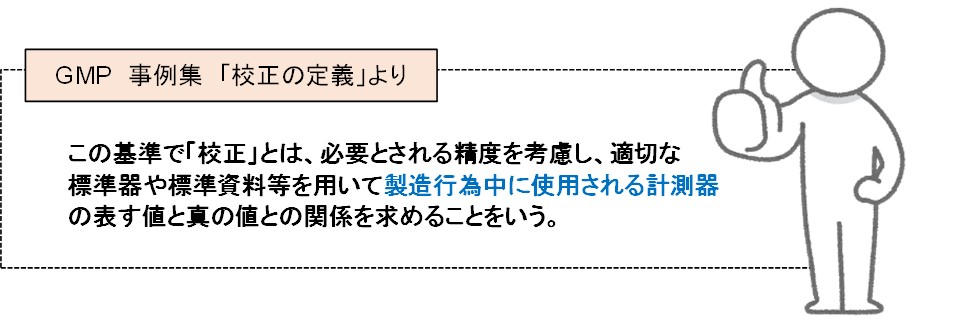 ■ 医薬品、食品、バイオなどのGMP等の規格要求で、現場校正が要求されているのは(以下の様な)校正の定義によるものと考えられます。